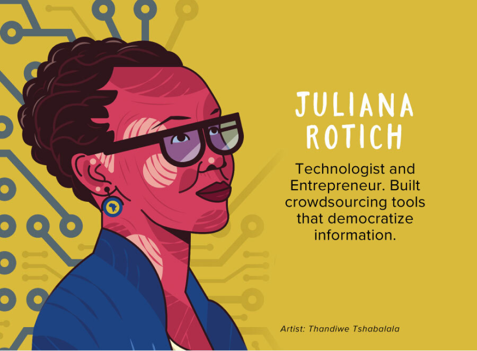 True innovation happens when people are brought together and are able to challenge each other to get to the best idea. By building crowdsourcing tools, Juliana Rotich brought connectivity to difficult environments, enabled collaboration and helped people tell their stories. She co-founded two organizations -- BRCK and Ushahidi -- to build the most reliable internet routers in the world and empower communities to advance social change through accessible technology solutions, respectively.