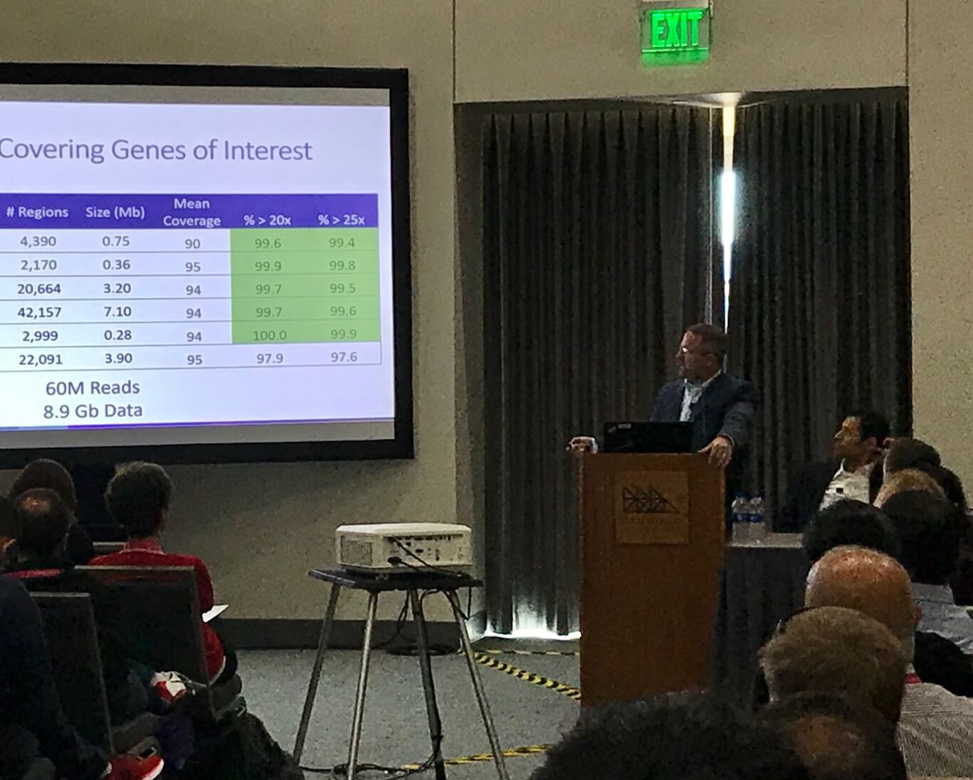 “The most important highlight was that 81 percent of the gene was covered properly so our opportunity to capture the variant was amazing,” she explained. “Our target for clinical work on 20x was 97 percent, but we covered at 100 percent. So all your bases were covered at 20x,” she said. “That’s the main criteria for clinical people. And importantly, the probes were all uniform. Everything was covered properly.”