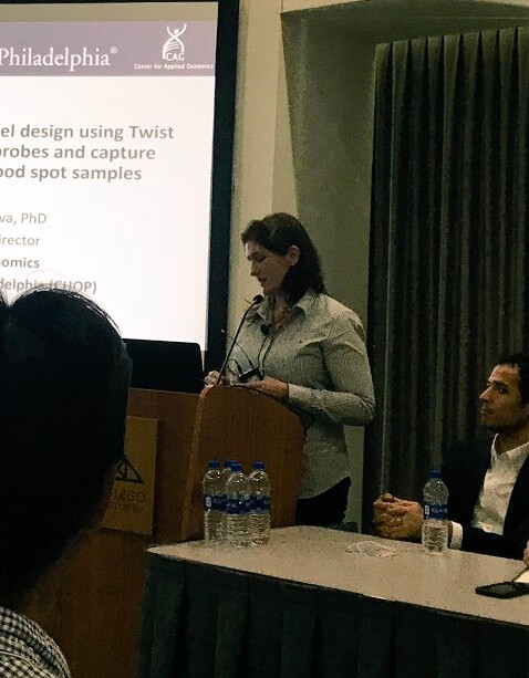Speaker: Renata Pellegrino, PhD, Technical Director at The Children's Hospital of Philadelphia. Presentation: High-Efficiency Neurological Panel Design using Twist Bioscience Double-Stranded Custom Targeted Enrichment Probes and Capture Optimization for Aged Dry Blood Spot Samples