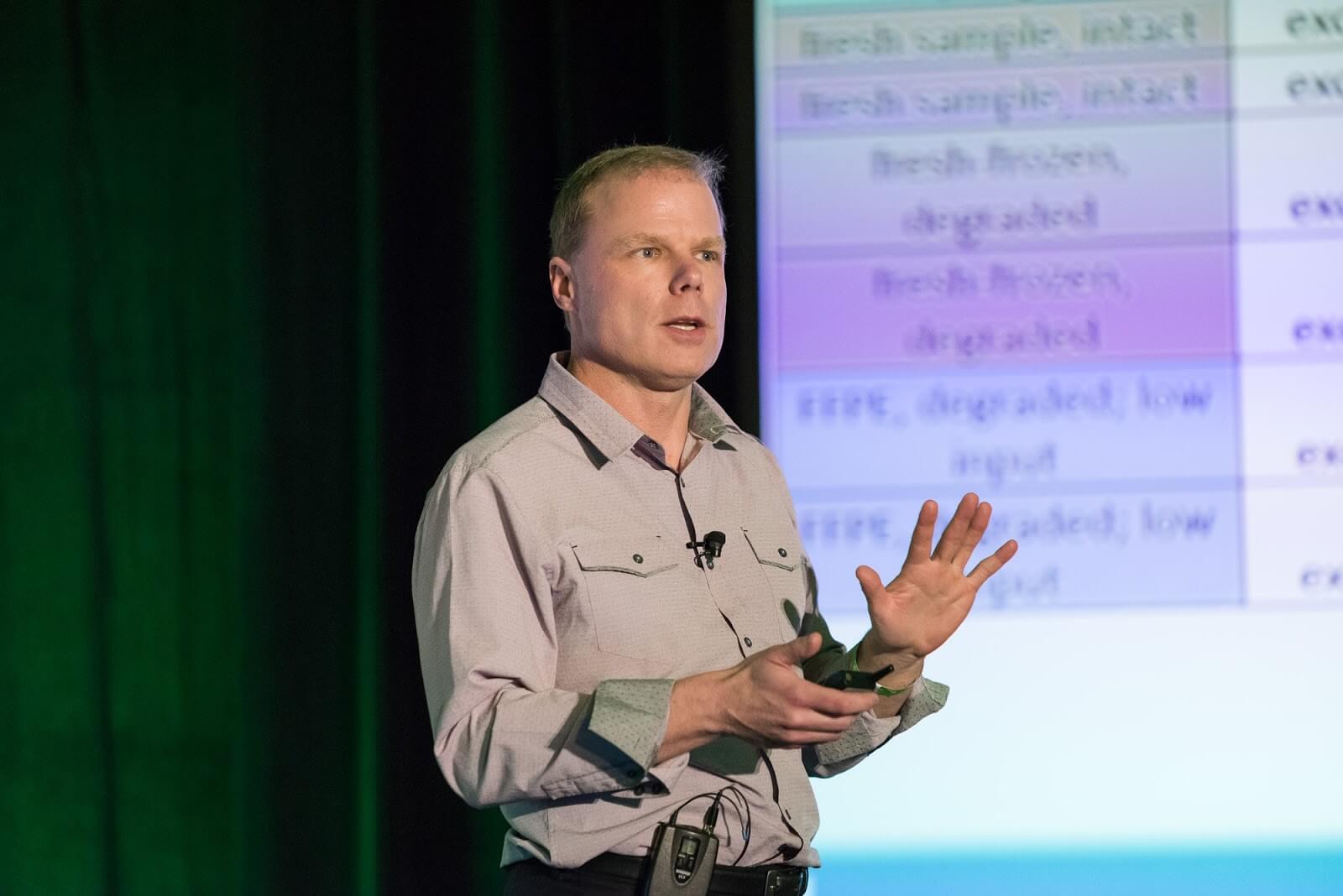 HudsonAlpha’s Shawn Levy, Ph.D., Faculty Investigator and the founding Director of the Genomic Services Laboratory (GSL) , showed the value of deep exome sequencing in specialized tissue samples in a presentation titled, ‘High-depth Exome Sequencing in FFPE Samples.’
