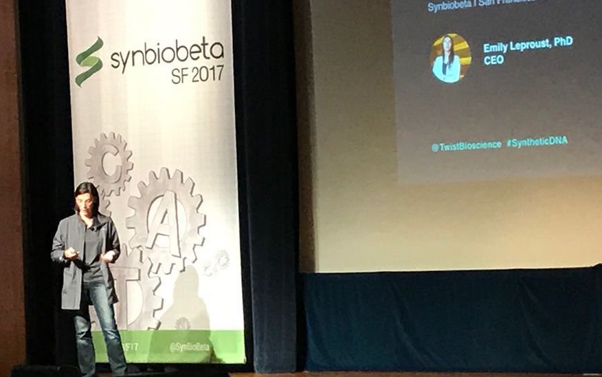 Twist Bioscience CEO Emily Leproust speaking this year at SynBioBeta in San Francisco