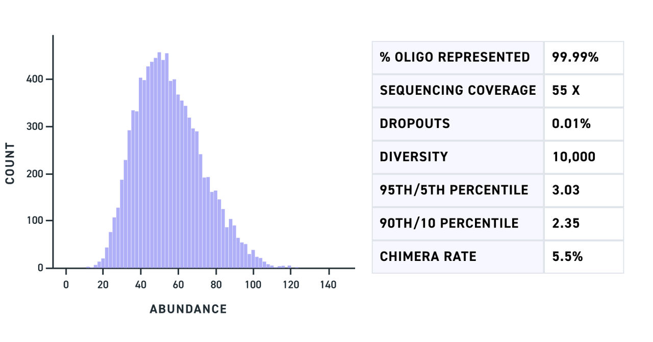 As a result, researchers cannot investigate all genetic variants in a single screen, slowing progress and limiting insights. Additionally, standard DNA synthesis maxes out at 300 bp, forcing researchers to stitch multiple DNA fragments together – a complex, laborious process – to create their desired sequence.