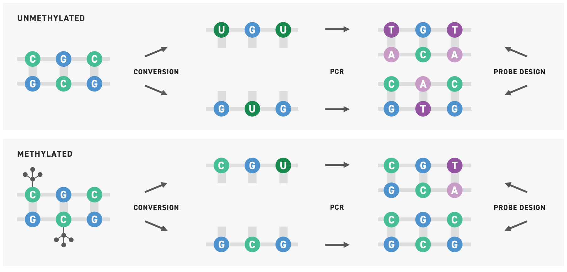 Researchers have largely relied on a methyl-seq approach known as bisulfite sequencing wherein bisulfite salts chemically convert unmethylated cytosines into uracils. During amplification, uracils are converted to thymines. Subsequent parsing of the data can then determine which cytosines were methylated, and which weren’t.