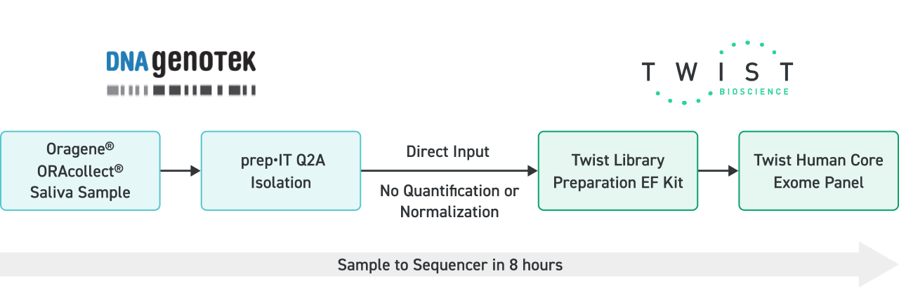 We at DNA Genotek began collaborating with Twist Bioscience, a manufacturer of synthetic DNA, on an end-to-end solution to address time-consuming and costly Next Generation Sequencing (NGS) laboratory workflows. This blog specifically highlights our efforts around improving the workflow for DNA isolation through targeted enrichment and whole exome sequencing.