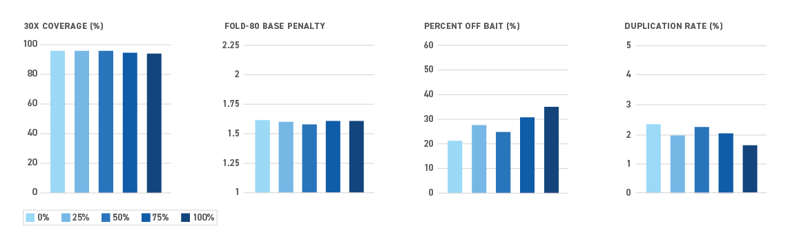 Target enrichment can be performed after conversion to enable more sensitive applications, but there’s a catch (or two): Conversion generates additional, unique DNA sequences that also need to be factored into the panel design. Conversion also simplifies DNA sequences by converting many cytosines to thymines. Such sequences can be more difficult to capture, which is why many targeted methyl-seq experiments suffer from high off-target rates.