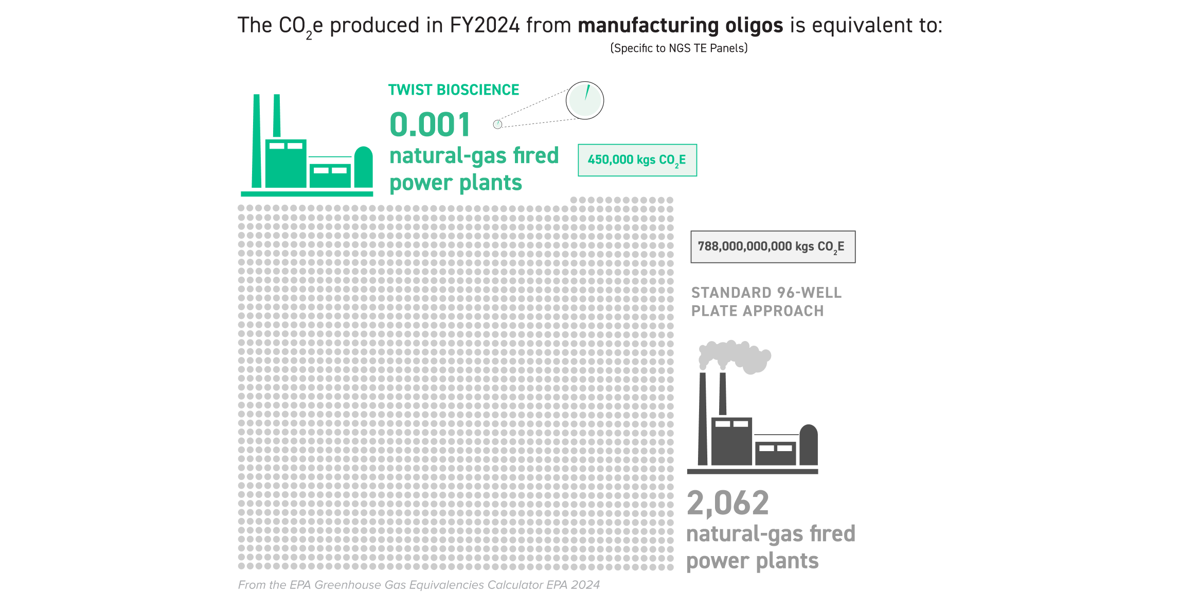 We have miniaturized traditional chemical DNA synthesis reactions to write over one million short pieces of DNA on each silicon chip which is approximately the size of a large mobile phone. As a result of these efforts our core platform technology reduces waste and consumption of chemical reagents by 99.8%, making our process significantly more sustainable and environmentally friendly than 96-well plate methods.