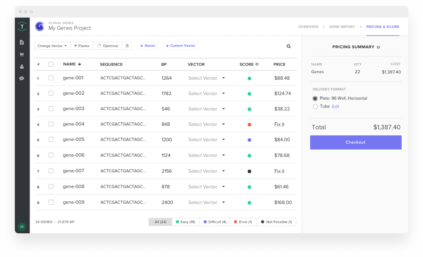 Our smart algorithm lets you know in seconds if your sequence can be synthesized or not