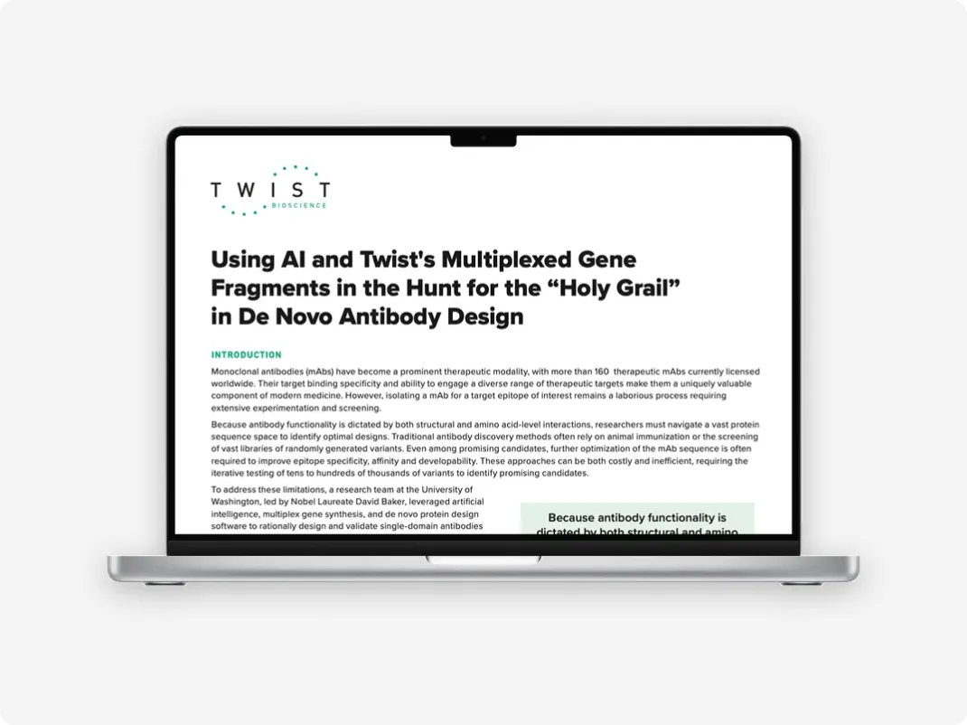 See how the researchers were able to computationally design an entire VHH screening library de novo, and directly synthesize every candidate for experimental validation using Twist’s Multiplexed Gene Fragments.