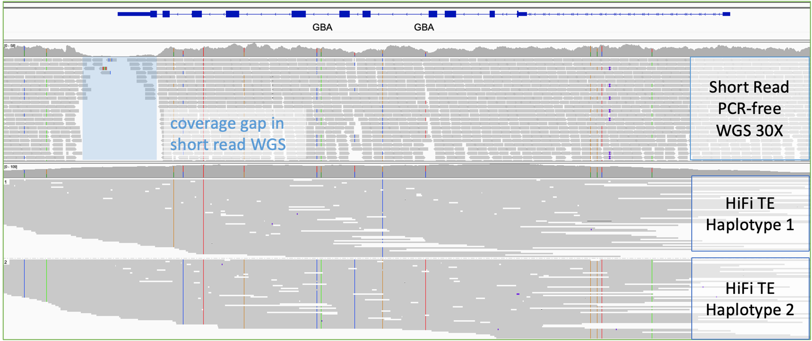 Full-gene phasing and no coverage gap in the GBA gene